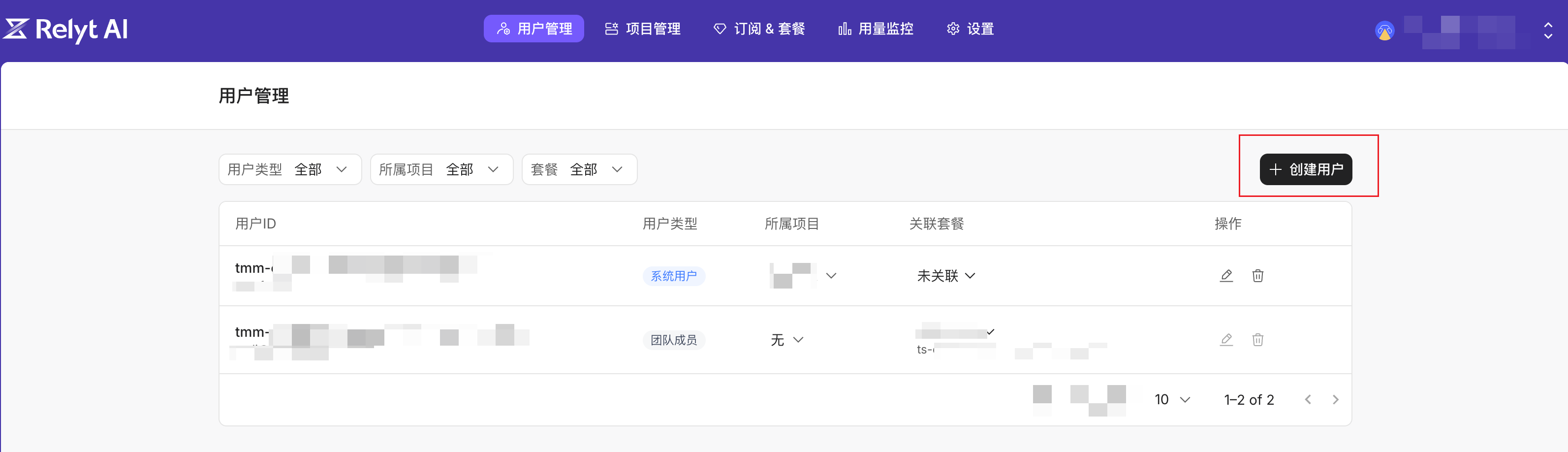 出于安全考虑,Relyt AI 建议定期清理不再使用的 API Key。已删除的 API Key 将无法再用于访问对应项目中的资源。- 在 项目管理 页面,点击目标项目卡片进入项目详情页。