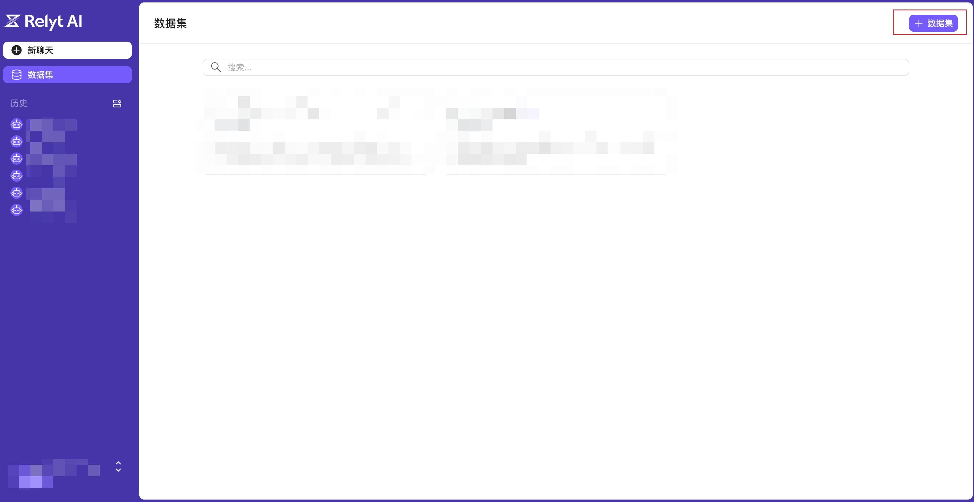 Relyt AI 支持对数据集的名字和描述进行修改,从而帮助您更好的实现数据内容管理。操作步骤如下:- 在 数据集 页面,找到目标数据集并点击该数据集进入详情页。