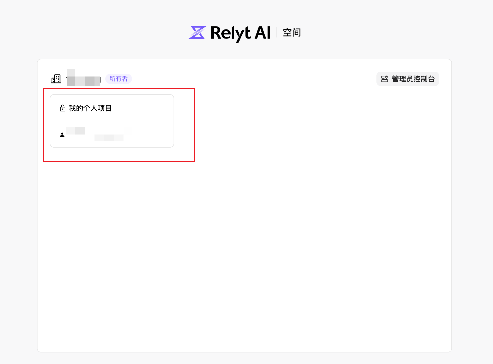 登录 Relyt AI,点击目标项目卡片,进入项目工作空间。