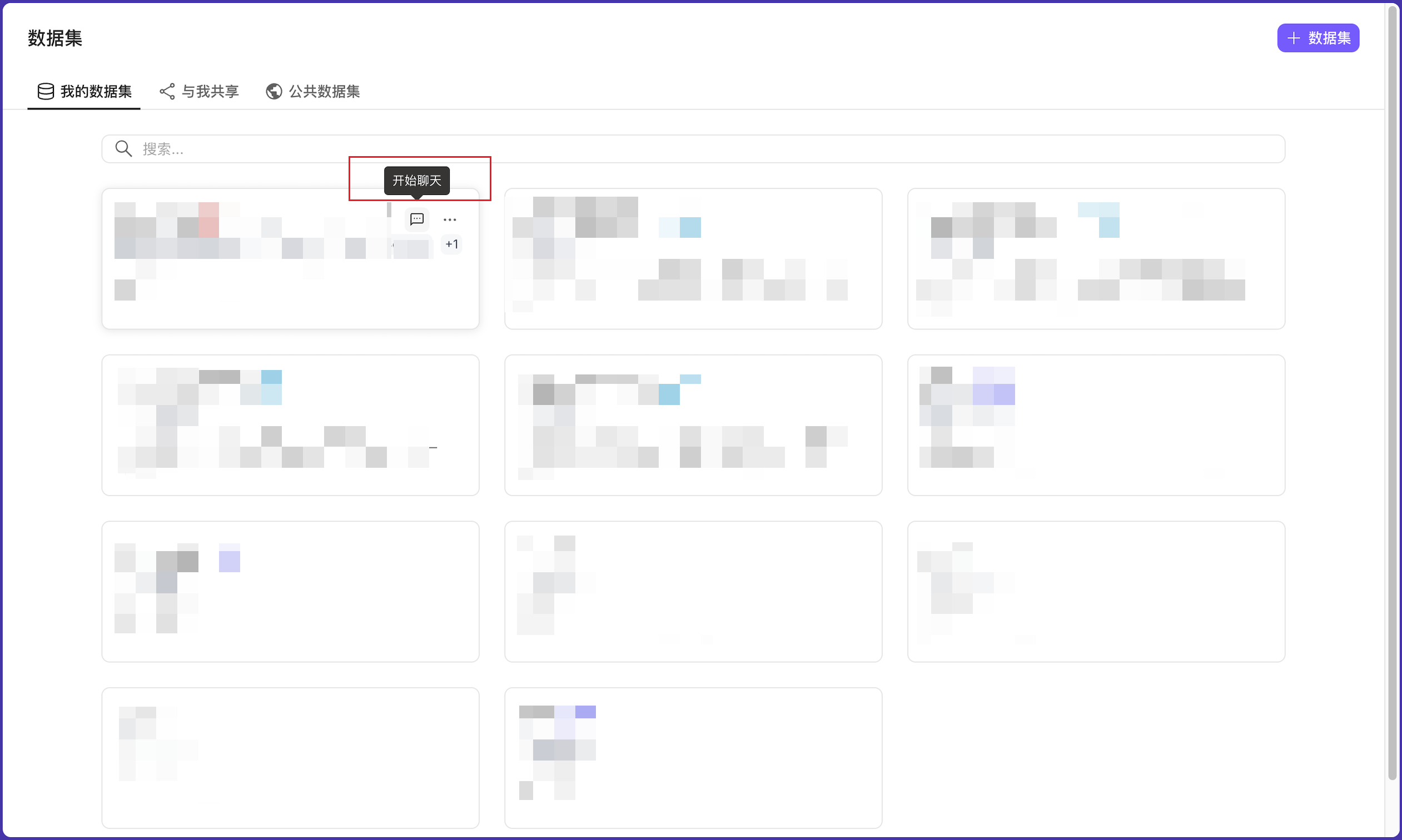 将数据移动到数据集右上方,点击 开始聊天 按钮。